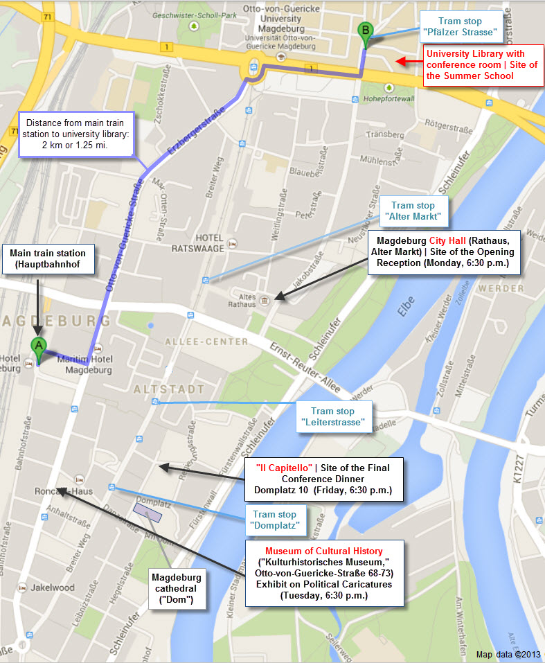 ISS13 | Magdeburg | Map showing the Sites of the main Summer School events